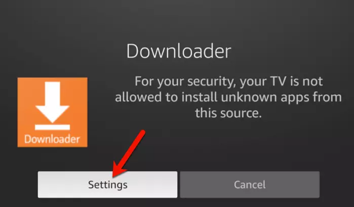10-As mentioned before, whenever you try to install TiviMate application manually from outside Amazon web store environment, you will be prompted for a security permission to be given. Amazon Security feature on the Firestick device intervenes and warns you about the installation of application from unknown sources. Since we trust the .APK file, we will proceed and allow the process. Click Settings.